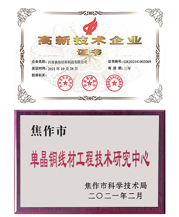 河南森格材料科技有限公司專(zhuān)注于高純單晶銅、高保真音頻線(xiàn)纜、高導(dǎo)銅合金等產(chǎn)品的研發(fā)和生產(chǎn),現(xiàn)為國(guó)家高新技術(shù)企業(yè)、焦作市高純單晶銅線(xiàn)材工程技術(shù)研究中心依托單位。公司技術(shù)團(tuán)隊(duì)現(xiàn)有中高級(jí)技術(shù)人員12人,已多次承擔(dān)國(guó)家及省市級(jí)科技計(jì)劃項(xiàng)目,并與河南理工大學(xué)、河南科技大學(xué)、蘭州理工大學(xué)、焦作大學(xué)、鄭州機(jī)械研究所等,保持著長(zhǎng)期的產(chǎn)學(xué)研技術(shù)合作。