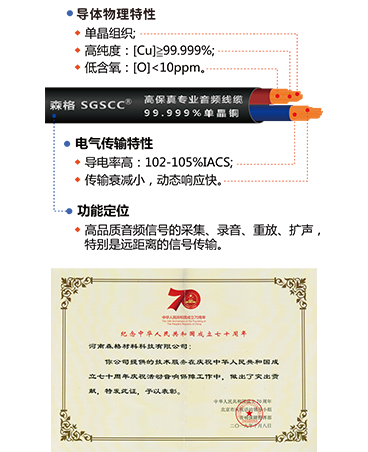 單晶銅,內(nèi)部無(wú)橫向晶界在,消除了“晶界惡化效應(yīng)”,是音頻信號(hào)傳輸?shù)睦硐雽?dǎo)體。公司技術(shù)團(tuán)隊(duì)研發(fā)的高純高導(dǎo)單晶銅桿及超細(xì)絲材,已被認(rèn)定為國(guó)家重點(diǎn)新產(chǎn)品;單晶銅高保真音頻線(xiàn)纜,已在國(guó)家大劇院、中央電視臺(tái)、人民大會(huì)堂、國(guó)慶 60-70周年閱兵慶典等多個(gè)國(guó)家重點(diǎn)工程及重大活動(dòng)中廣泛應(yīng)用。