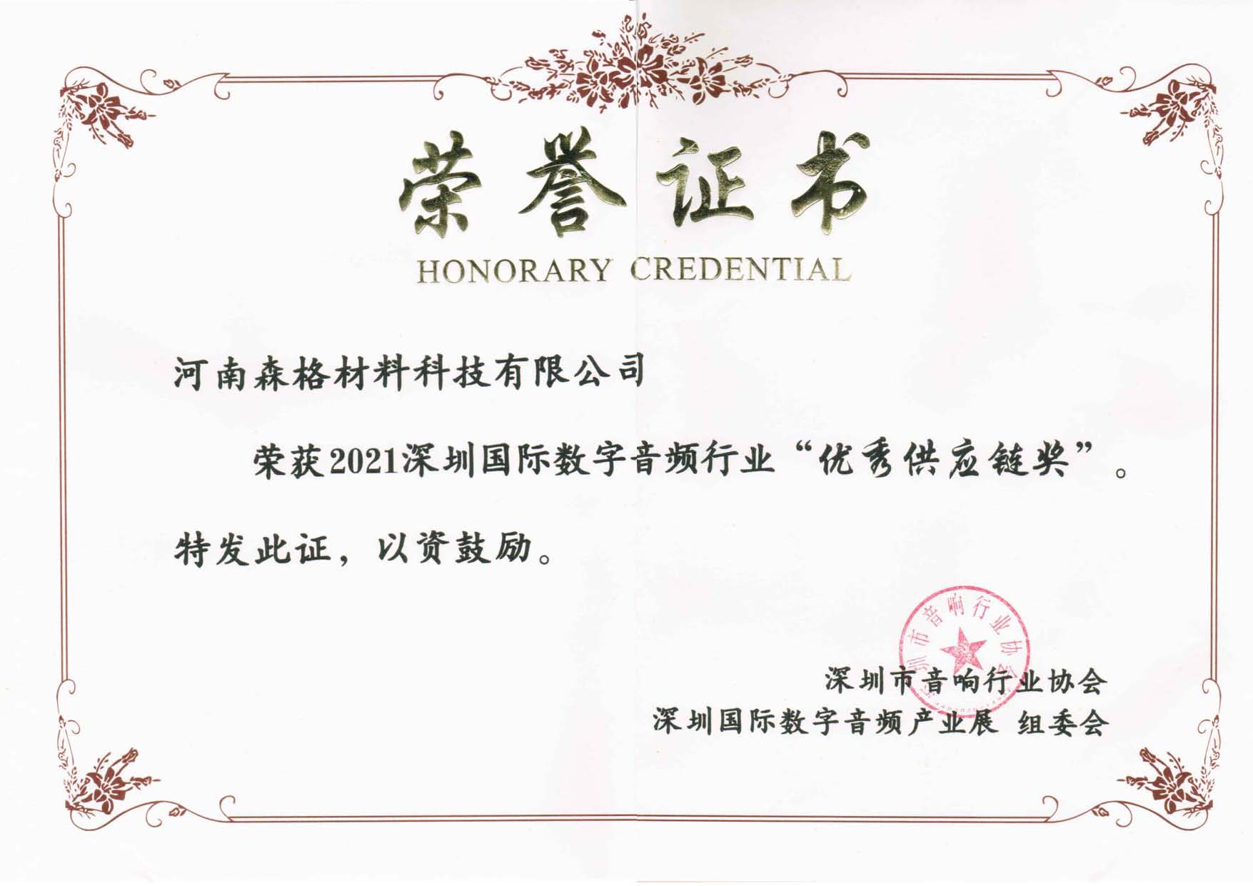 深圳國(guó)際數(shù)字音頻行業(yè)“優(yōu)秀供應(yīng)鏈獎(jiǎng)”證書(shū)