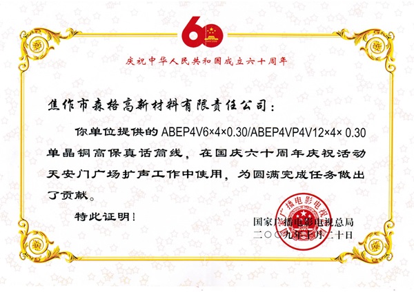 慶祝中華人民共和國(guó)成立六十周年榮譽(yù)證書(shū)
