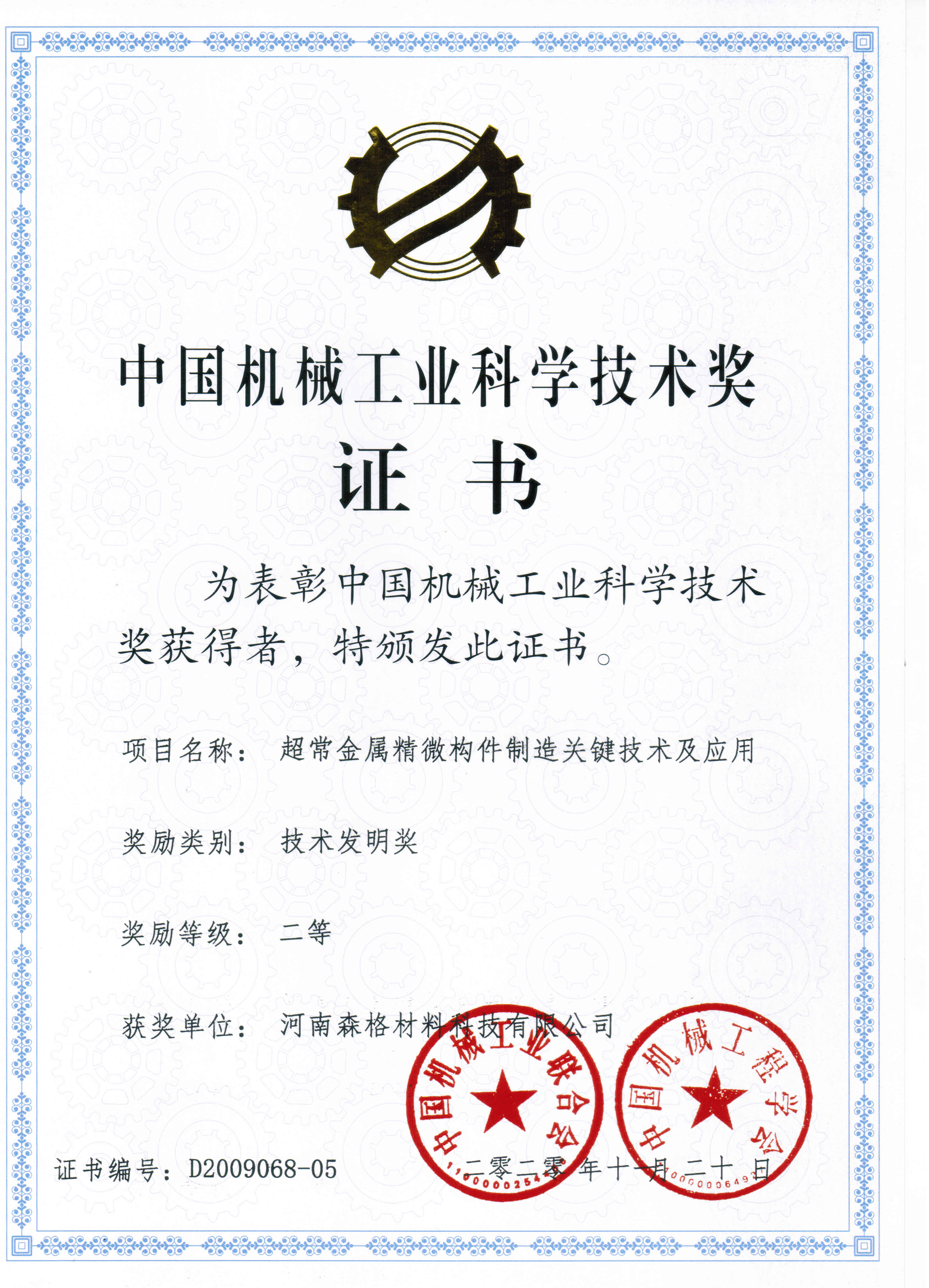 中國機械工業(yè)科學技術獎技術發(fā)明二等獎