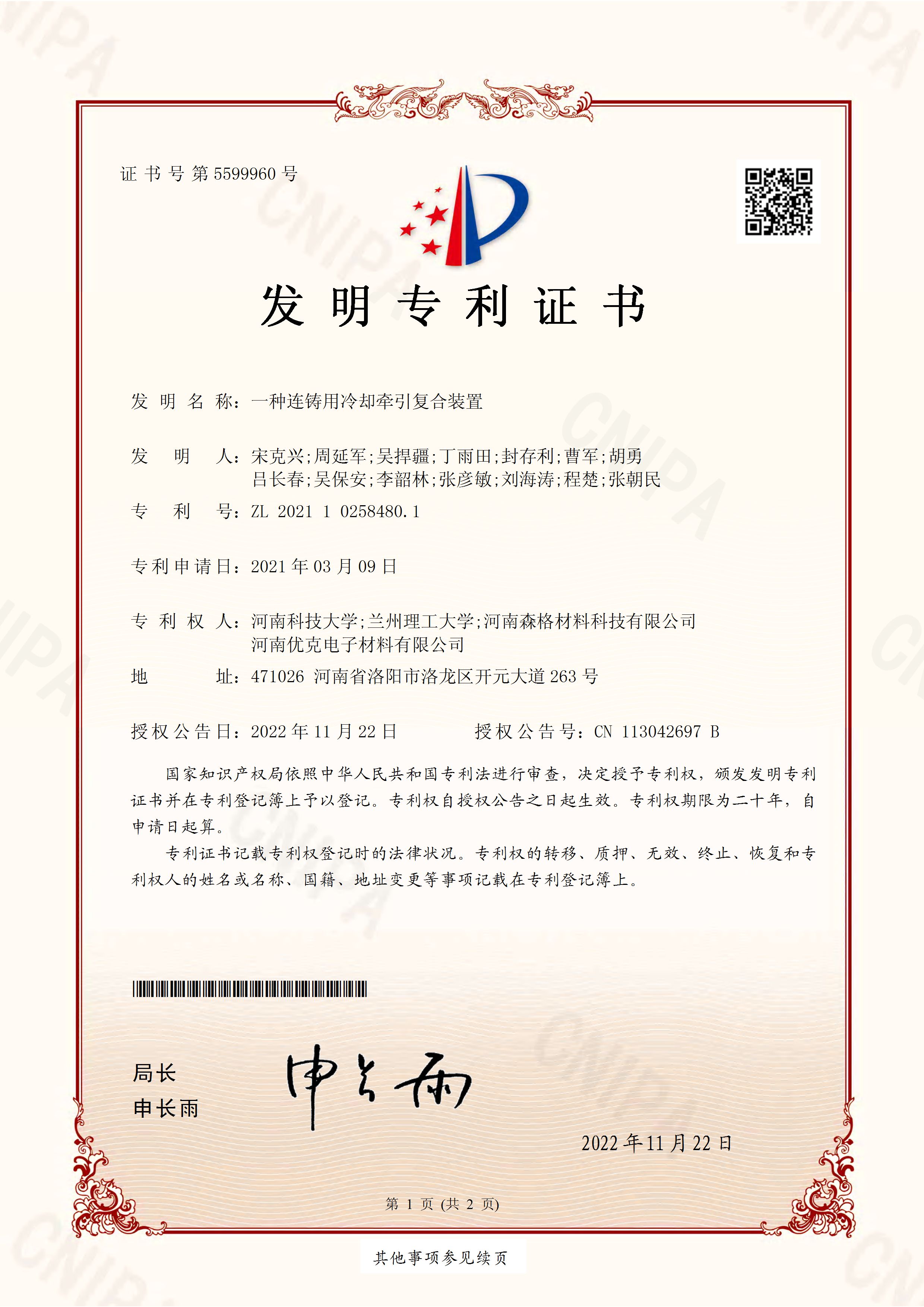HNSG-發(fā)明專利2-一種連鑄用冷卻牽引復(fù)合裝置